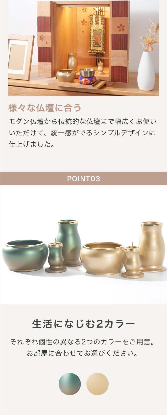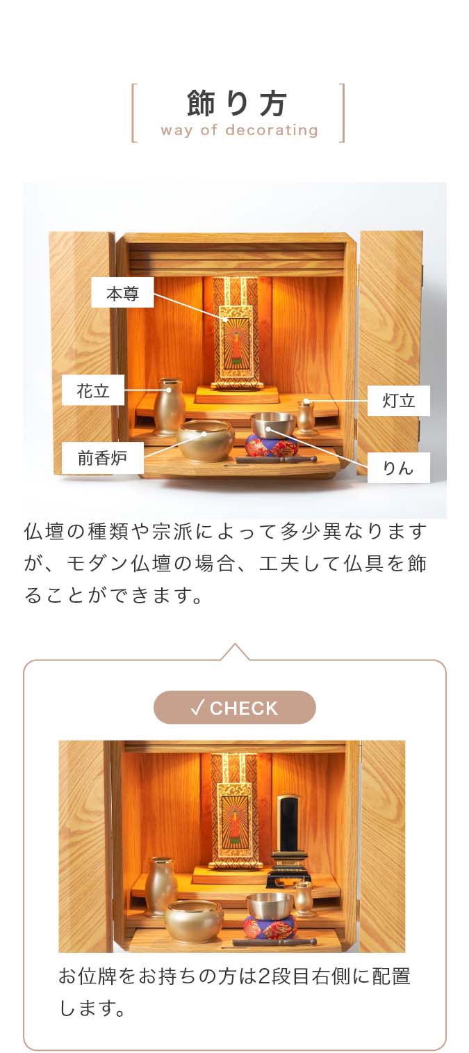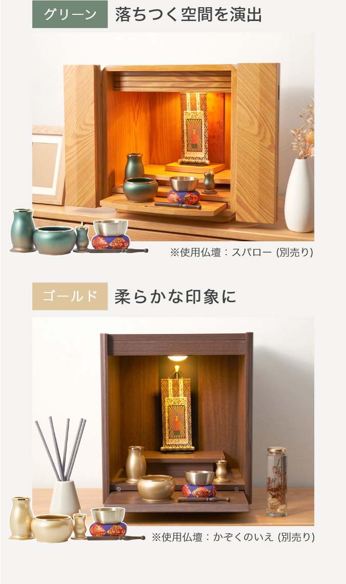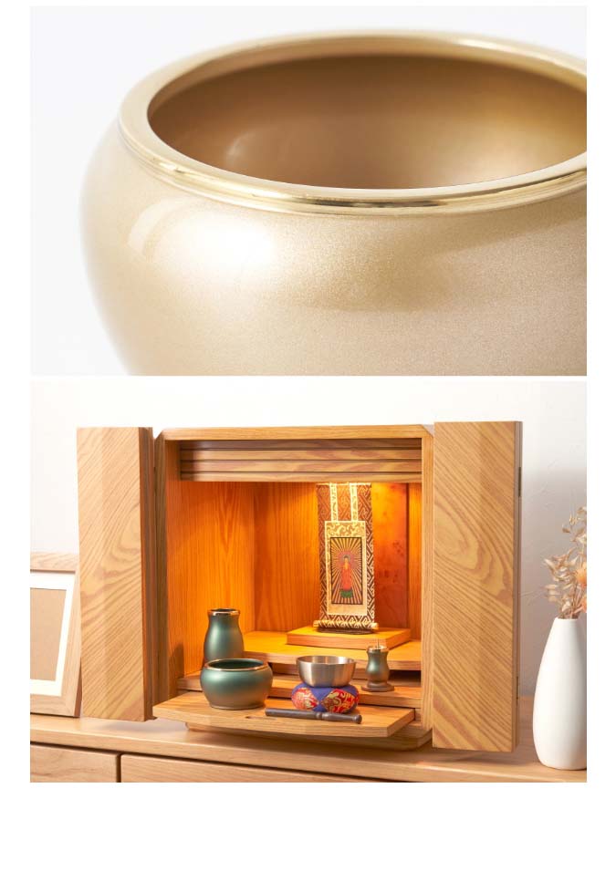 お仏壇をシンプルにしたので、買い替えました。スッキリとしていて、且つ可愛かったです。おリンの音色もとても気に入っています。